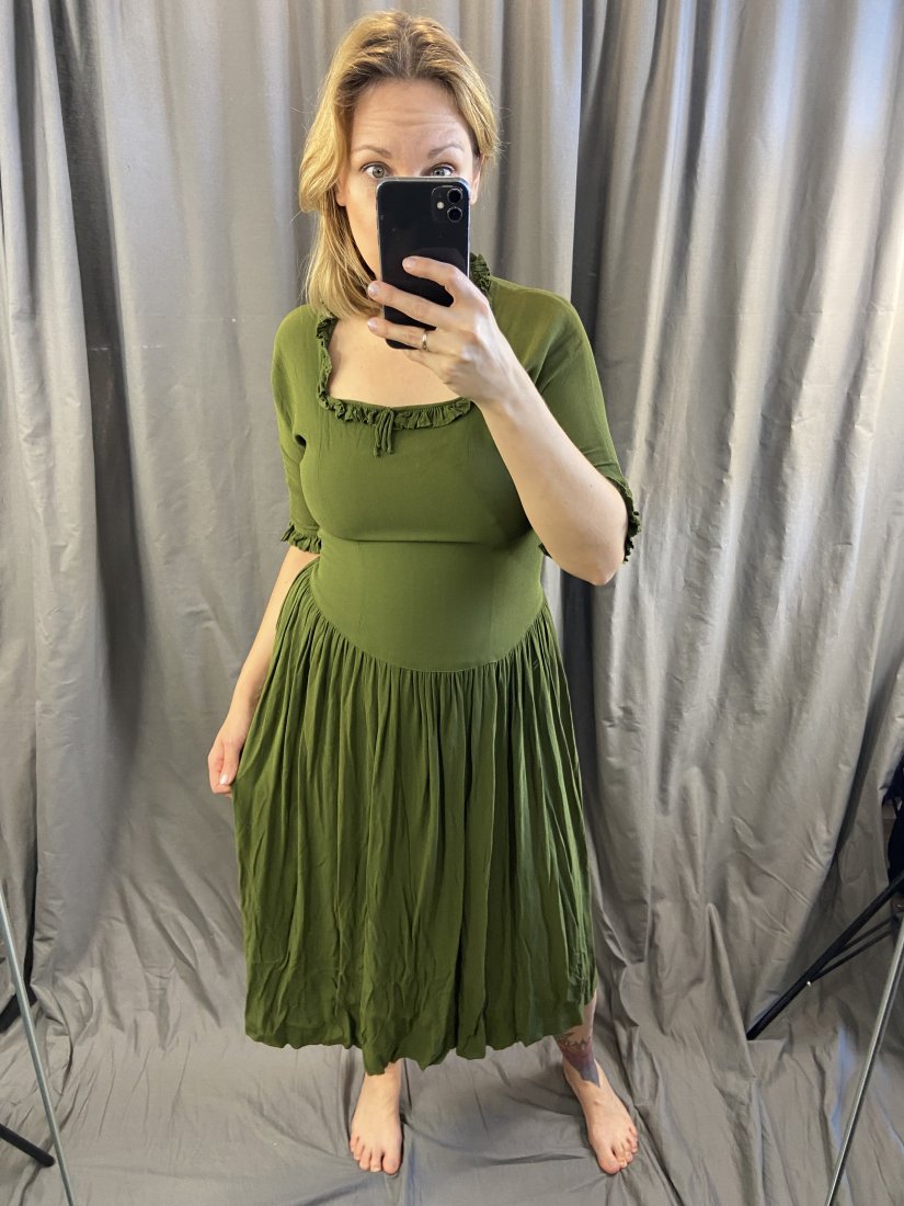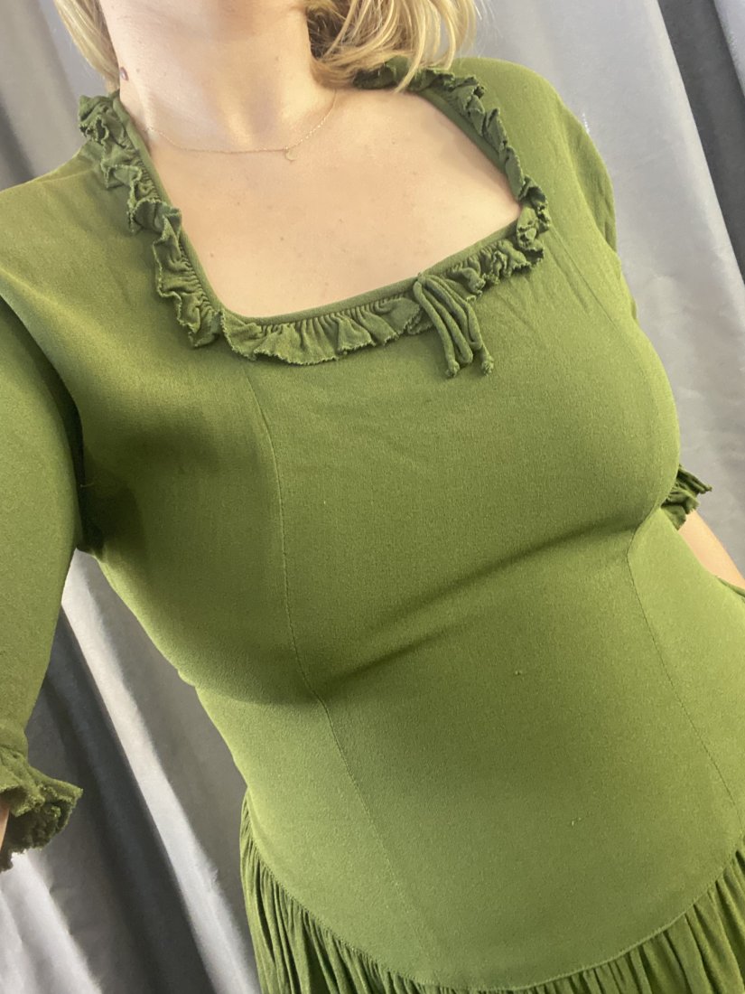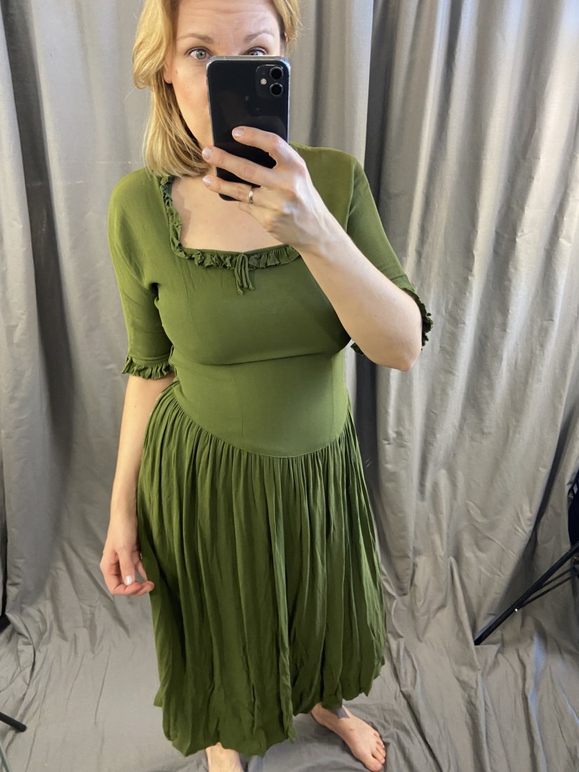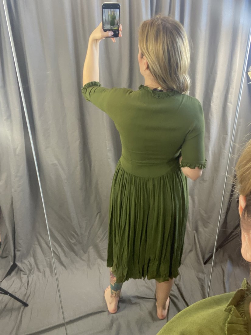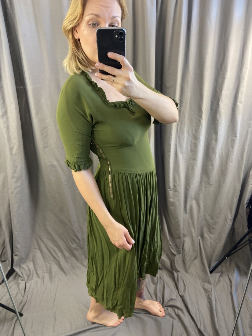 Sukienka naturalna prawdopodobnie lata 30te.Uszyta ręcznie przez twórców marki Magasin du Nord, Zamek ma napis LYSTA na sobie (lata 30te?) https://en.wikipedia.org/wiki/Emil_Vett