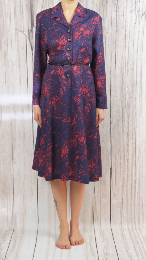 Piękna sukienka z lat 60-tych. 95% poliester, 5% wełna. Najlepiej wygląda związana paskiem.
