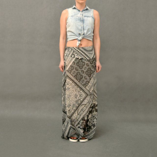 Długa, zwiewna i lekka spódnica w biało czarny wzór. Idealna na lato. Marka KappAhl. Materiał lekki, bibułkowy.