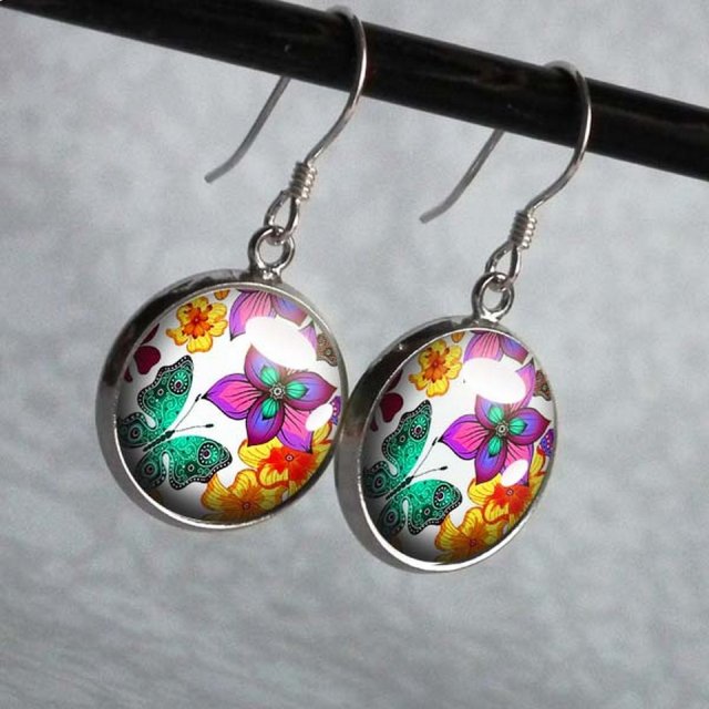 Delikatne, śliczne kolczyki wiszące z oryginalną grafiką,zatopioną pod wypukłym szkiełkiem i oprawioną w hipoalergiczną bazę w kolorze srebra. Grafika jest najwyższej jakości, wyraźna i nasycona. Bigle otwarte ze srebra próby 0,925. Oryginalne kaboszony wykonane ręcznie według mojego projektu i przeze mnie, z dbałością o każdy detal.
