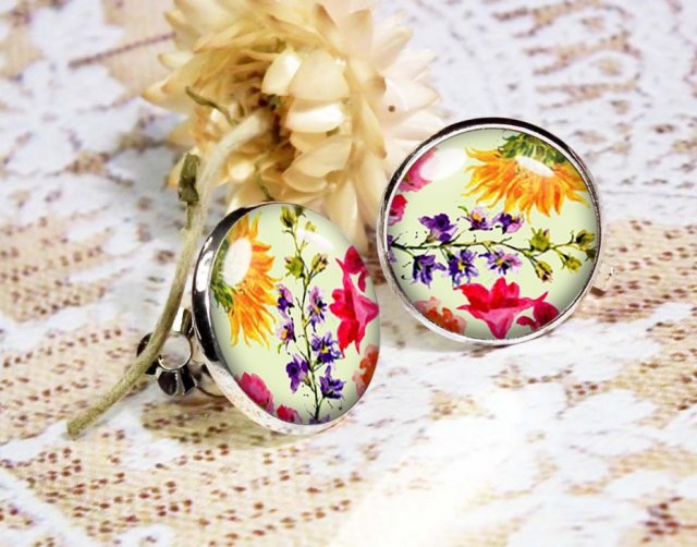 Oryginalne klipsy z grafiką artystyczną, zatopioną pod wypukłym szkiełkiem ( tzw. szklanym kaboszonem dającym delikatny efekt trójwymiarowości) i oprawioną w hipoalergiczną bazę w kolorze srebra, bez niklu i ołowiu. Baza i zapięcie antyalergiczne, posrebrzane. Urocze, subtelne i delikatne klipsy, zaś dzięki unikalnej grafice artystycznej - niepowtarzalne i jedyne w swoim rodzaju.