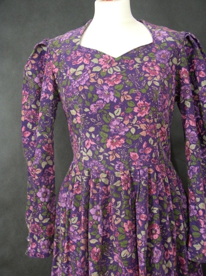 Sukienka firmy laura ashley.Materiał bawełna.rozdaj sztruksu.Rozmiar 40.Zapinana ztyłu na zamek.Odcięta w pasie.Dół marszczony.Rękaw długi,zapinany na dwa guziki+bufki.Dekolt ozdobnie wycięty.Stan bardzo dobry.Długość 122 cm,pod pachami 100 cm.