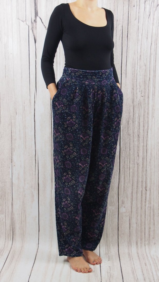 Bawełniane (cienki sztruks) spodnie z wysokim stanem od Laury Ashley. Z lat 80tych. W świetny kwiecisty wzór.