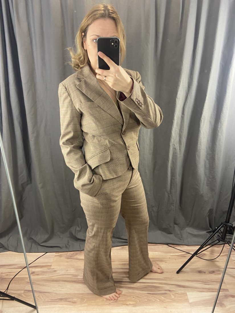 Laura Scott. Mega garnitur z poli 63%, wiskozy 34%, elastyny 3%, podszewka z poliestru (w marynarce).