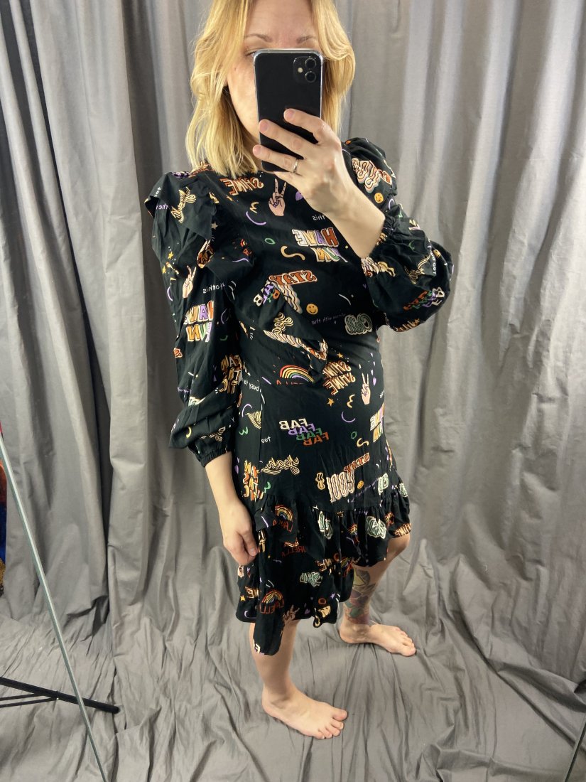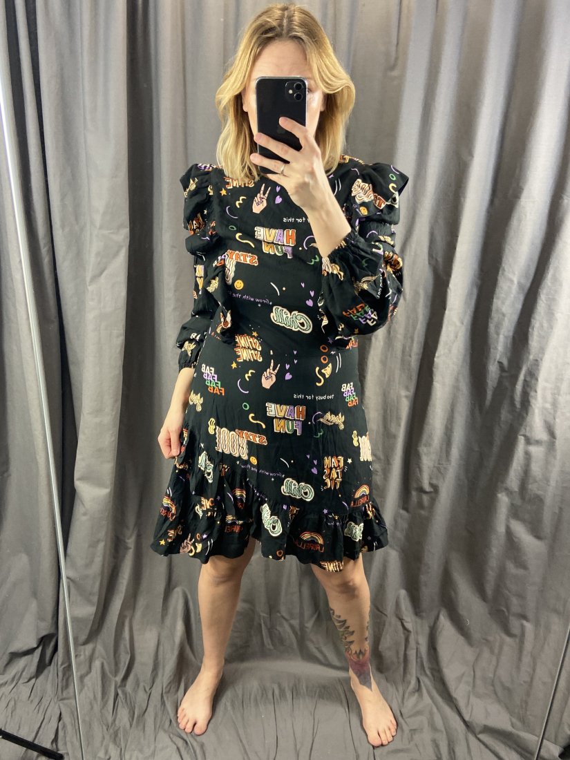 Laurella. Boska wuskozowa sukienka w wesołe wzorki. Sukienka jest idealnie skrojona, pięknie wysmukla sylwetkę.