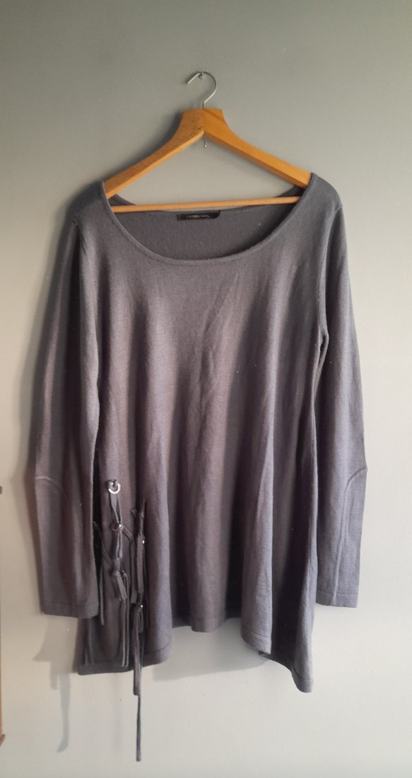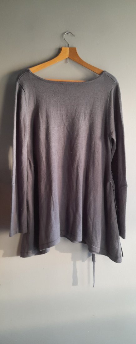 Tunika sweter stan idealny 50% wełna ciekawy fason długość 73/80 szerokość pod pachami 52x2 bez naciągania kolor w realu ciemny morski