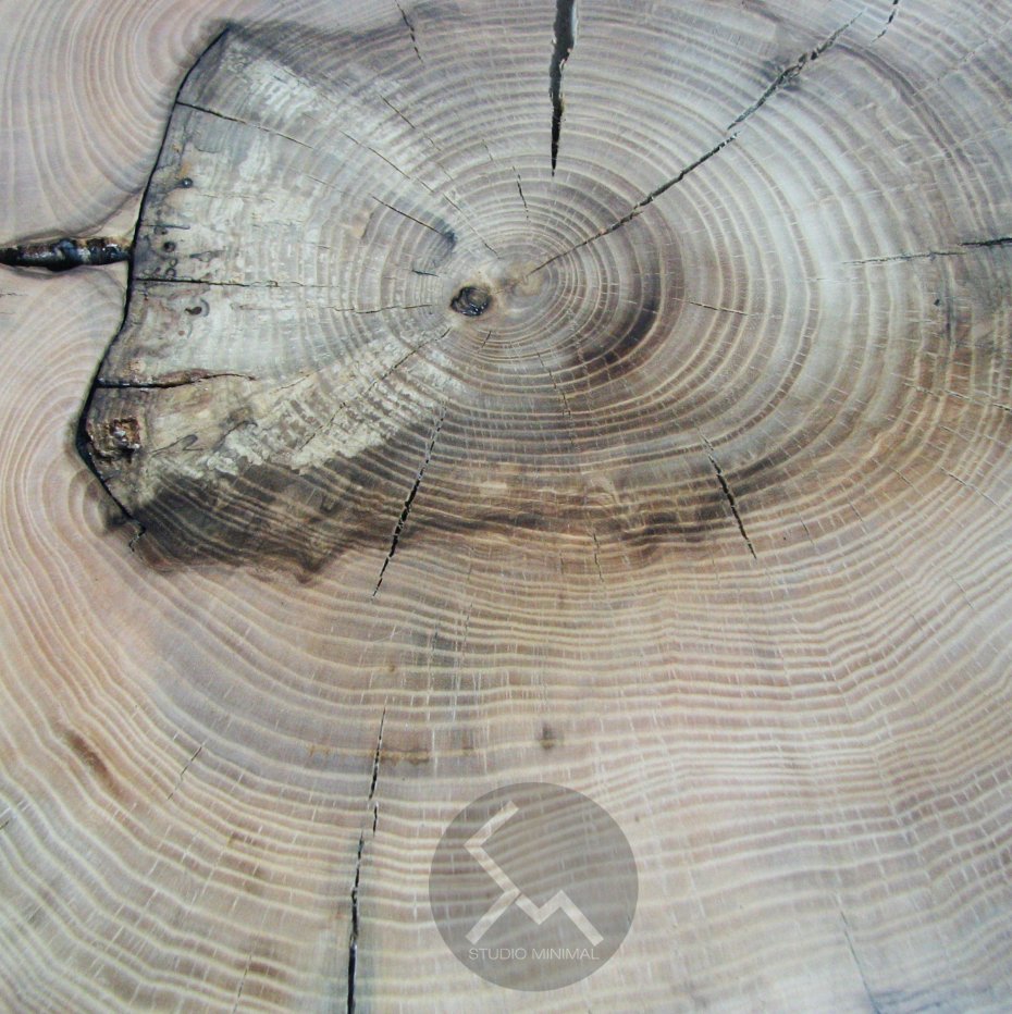 Stolik/ława wykonany z plastra Jesionowego drzewa oraz drewnianych grubych nóżek.