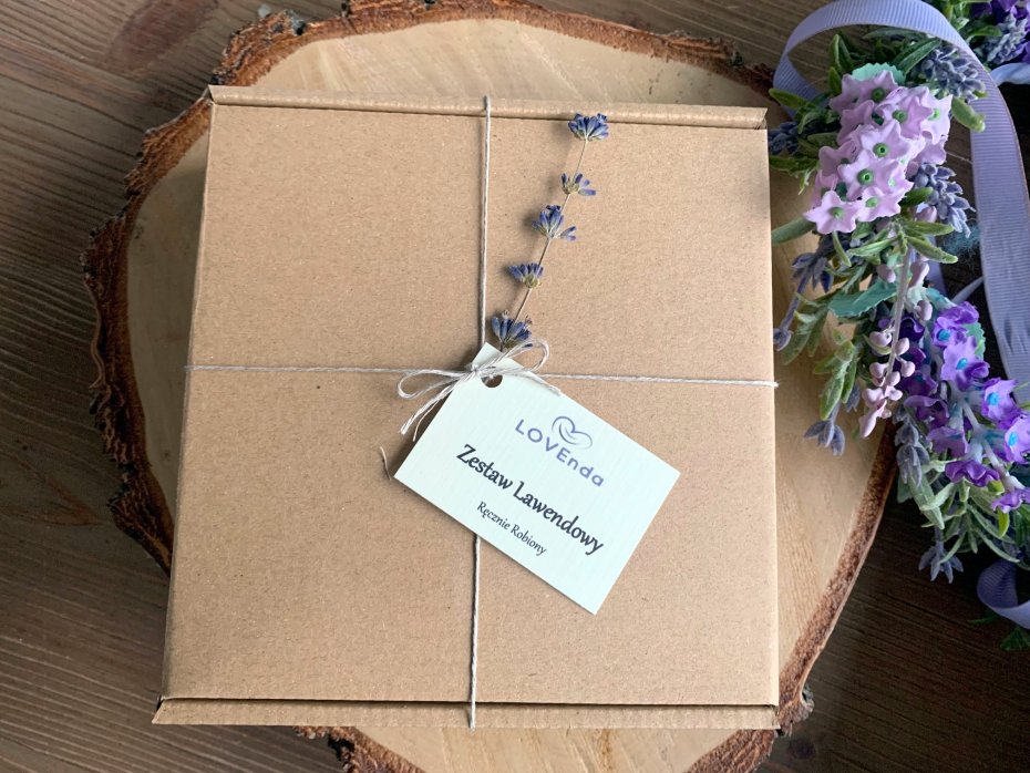 Zestaw jest zapakowany w stylu eko - w kartonik z gałązką suszonej lawendy i zawieszką z informacją o produkcie. Dowolną dedykację z przyjemnością wydrukujemy gratis! LOVEnda to pole lawendowe na Mazurach. Kwiaty to nasza miłość,pasja to nasze życie! Wszystko zabiegi wokół roślin wykonujemy ręcznie, bez użycia choćby kropelki chemii. W końcu na naszym polu dorastają nasze dzieci, uczą się jak żyć w zgodzie z naturą i dbać o ziemię i rośliny, aby wdzięczna lawenda dawała nam to co ma w sobie najcenniejszego - kwiaty i zapach z olejku.