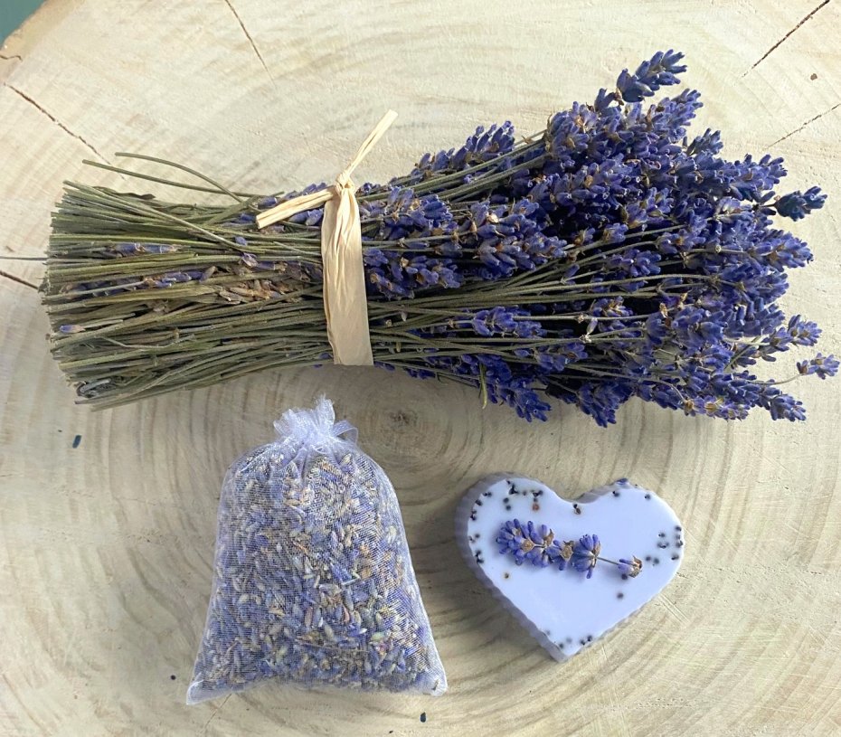 3) Bukiecik suszonej lawendy z ekologicznej plantacji, bukieciki mają długość około 15 cm.