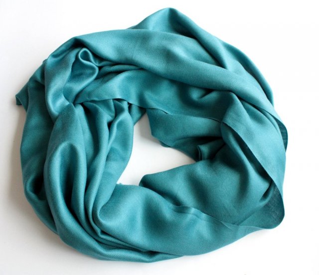 Duży, miękki szal w niezwykle twarzowym, lazurowym odcieniu.