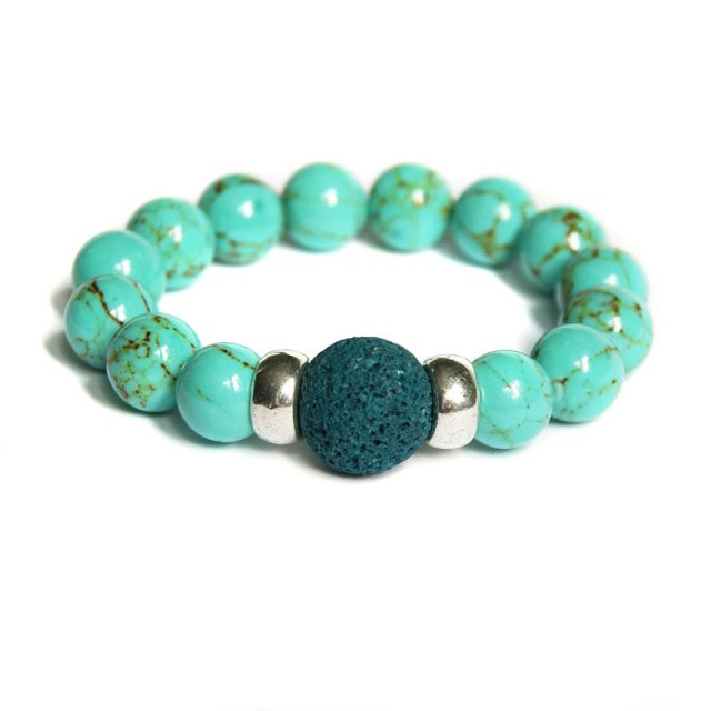 absolutnie wyjątkowa i okazała bransoletka na podwójnej, solidnej lince elastycznej, wykonana ze sporych kul howlitu w odcieniu lazurowego turkusu (kule 12mm). dodatki: duża kula lawy wulkanicznej (16mm), ozdobne metalowe elementy.... PASUJE NA NADGARSTEK 14,5-15,5CM.... zobacz całą kolekcję!!! MOJA BIŻU ZAWSZE PODRÓŻUJE OZDOBNIE ZAPAKOWANA ;-)