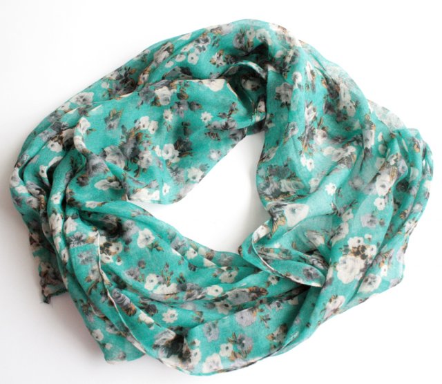 Miękki, luźno tkany szal w kwiaty wykonany z wiskozy.