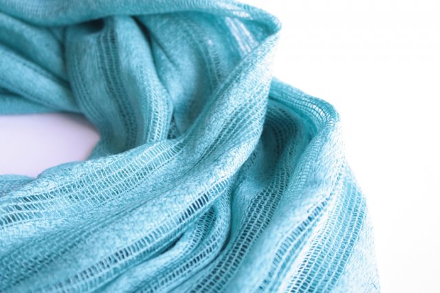 Niezwykle delikatny, miękki w dotyku szal w pięknym lazurowym odcieniu (błękit przechodzący w turkus).