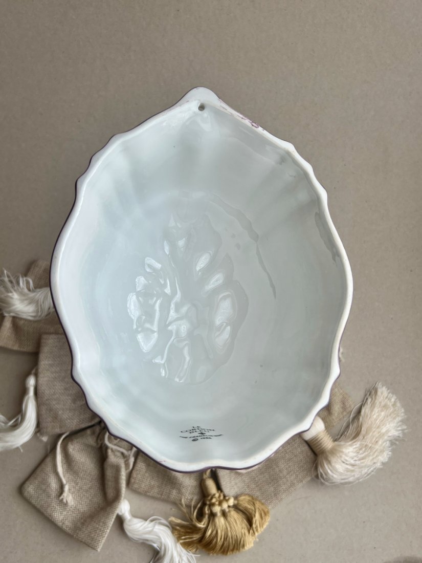 Forma ozdobna, przystosowana do zawieszenia, wykonana z najlepszej jakości dzwięcznej jak dzwon porcelany. Plastyczne zdobienie i ręczne malowanie. Bardzo ozdobny przedmiot. Wczesna, pierwsza produkcja angielska(ponad 40-letnia.), wysokiej jakości z dopracowanymi detalami. Następne produkcje wykonywane były już poza anglią, dużo niższej jakości z innej porcelany i zdobienie mniej wyrazne.