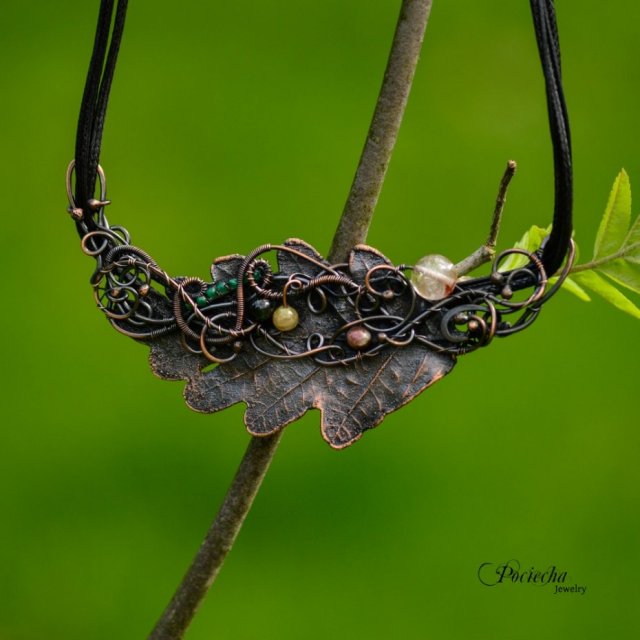 Tagi: #elektroformowanie, #liść, #naszyjnik, #wire wrapping