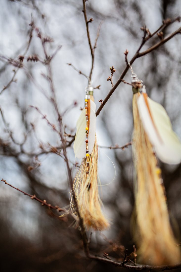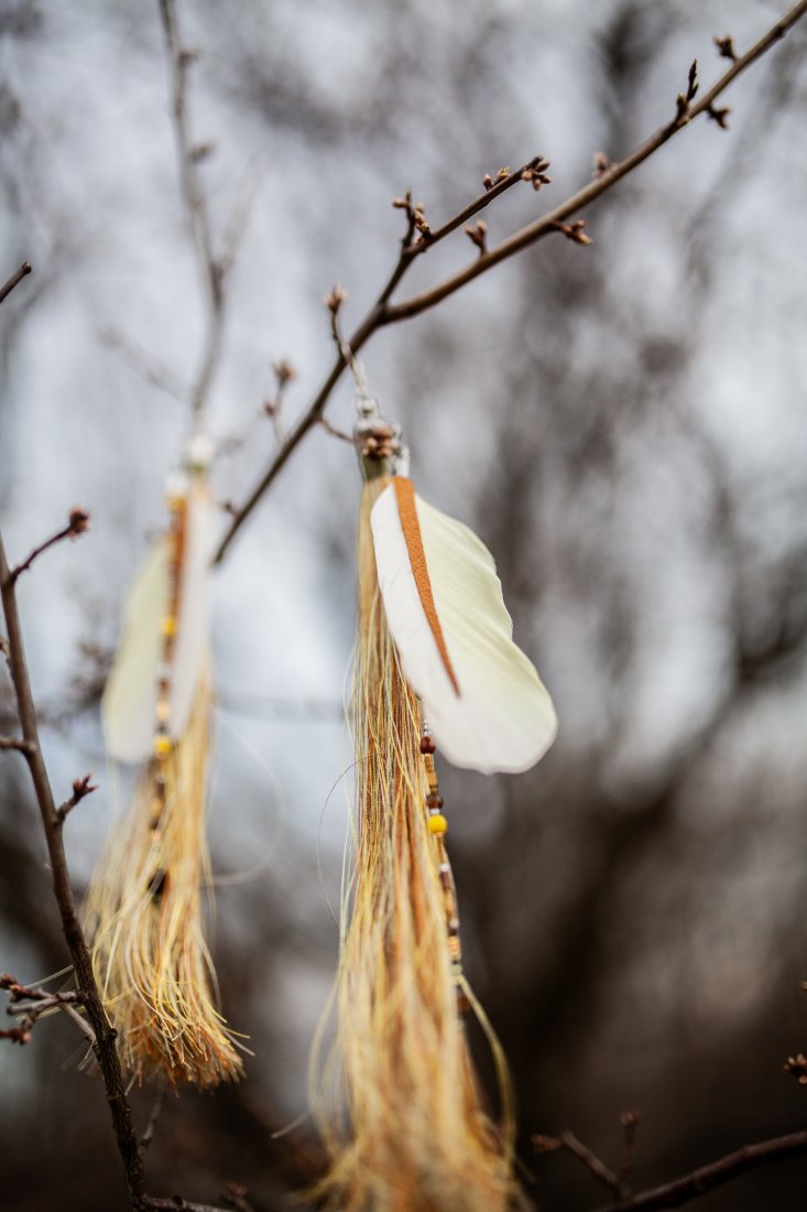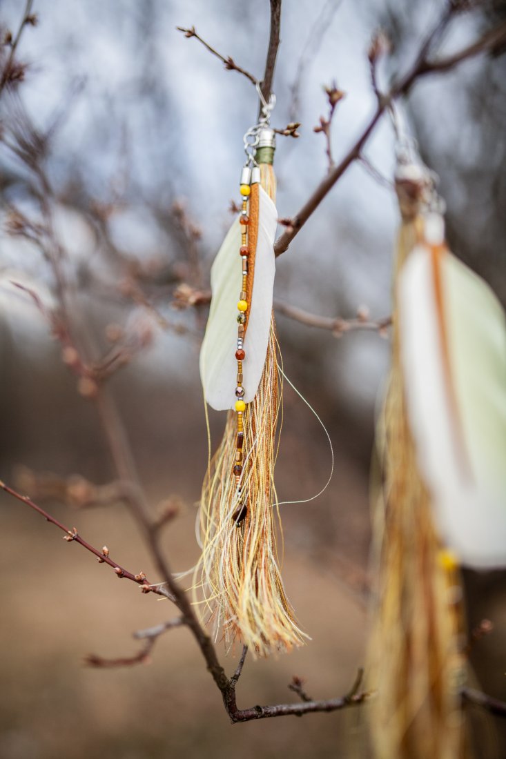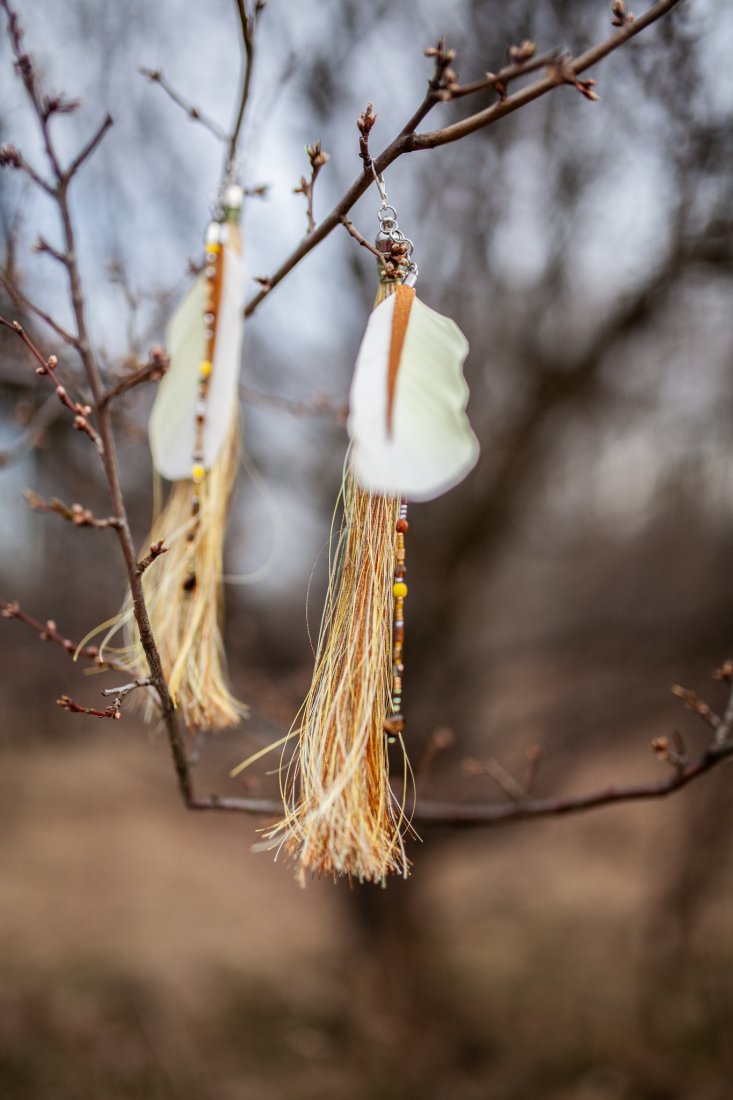 Mieniące się chwosty z pauzimi piórami z naklejoną skórą naturalną
