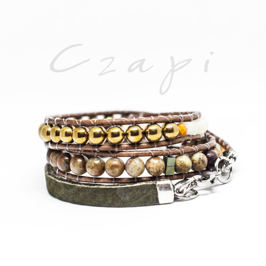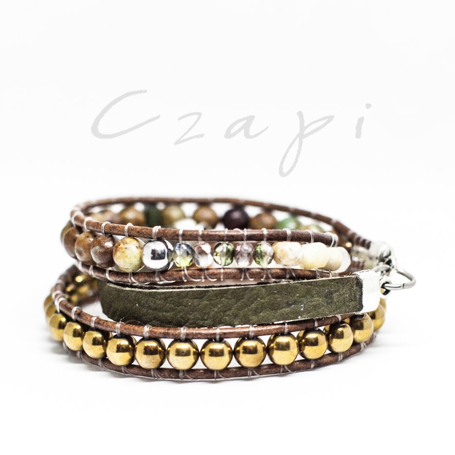 japońskie korali Miyki, Toho, czeskie koraliki Fire Polish, rzemień, elementy metalowe i ze stali chirurgicznej