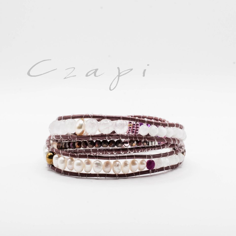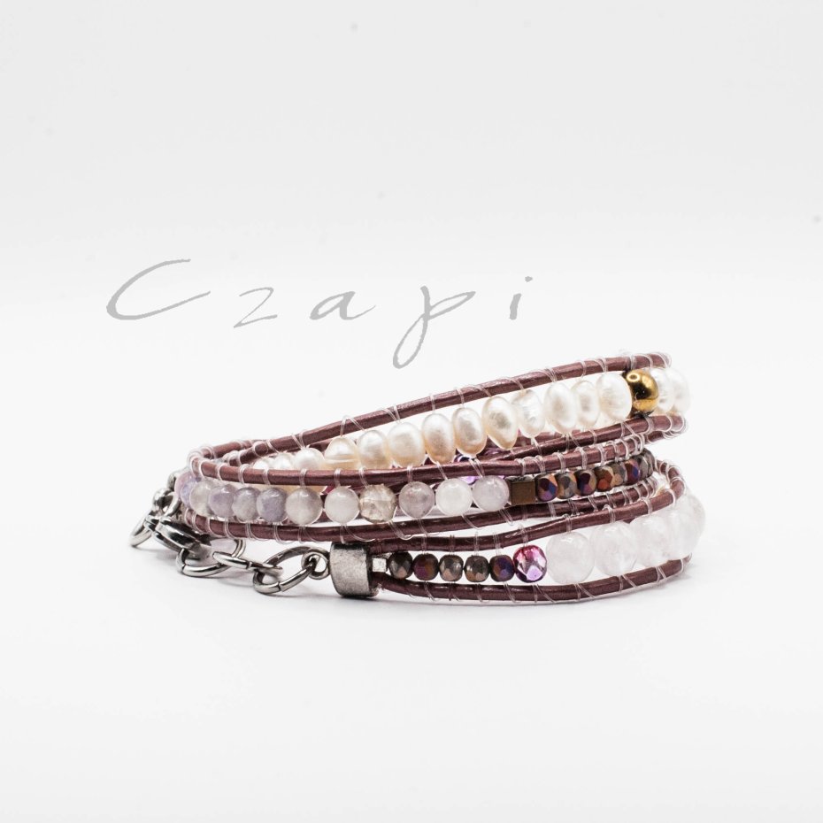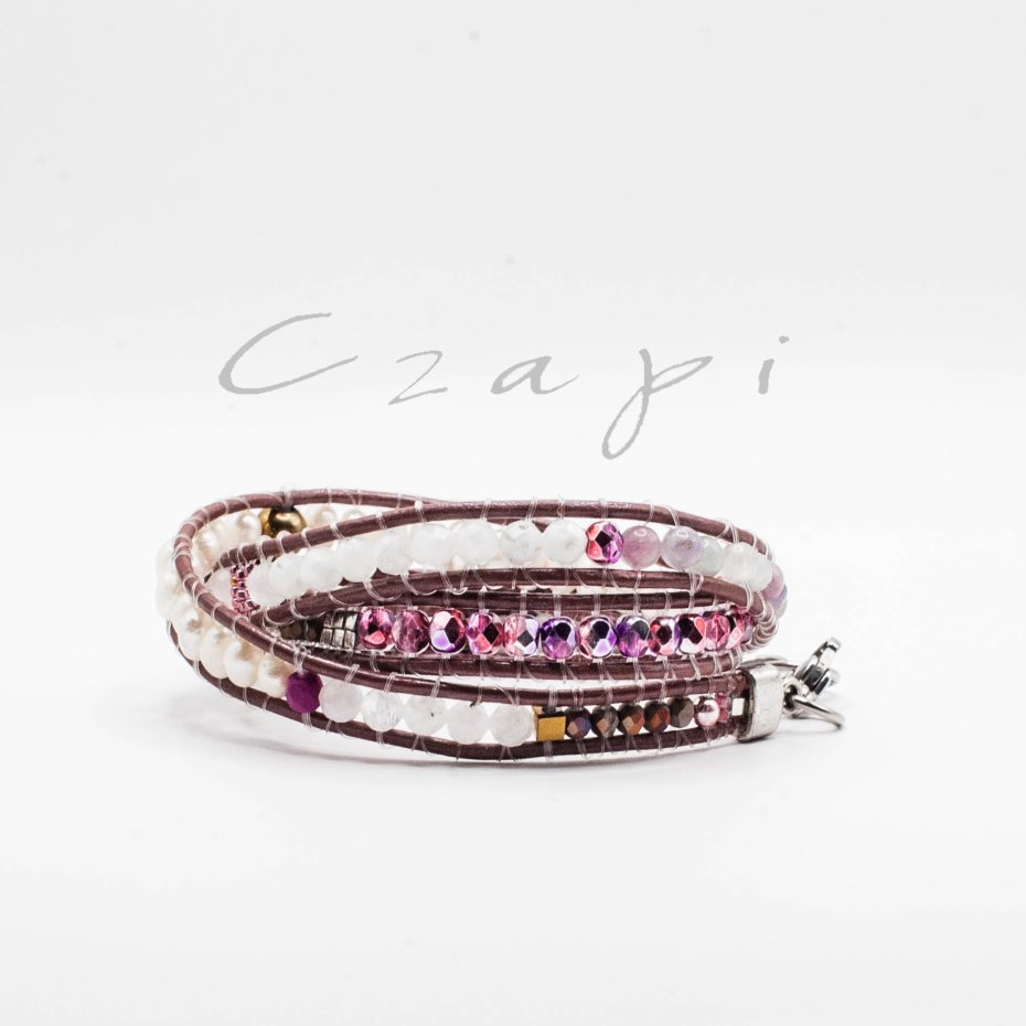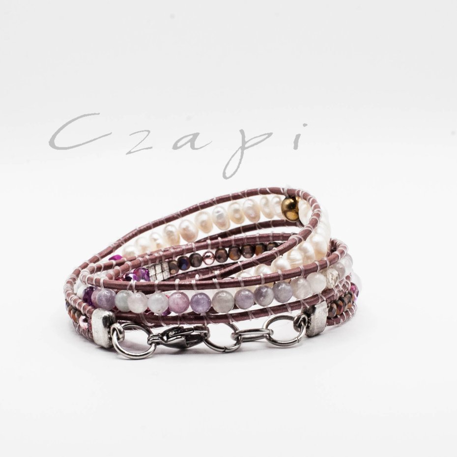 japońskie korali Miyki, Toho, czeskie koraliki Fire Polish, rzemień, elementy metalowe i ze stali chirurgicznej