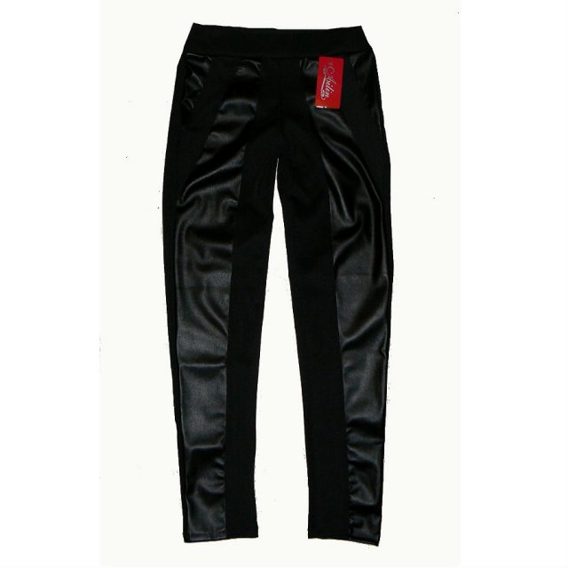 Legginsy z wstawkami z matowej skóry ekologicznej, tył gładki bez wstawek.