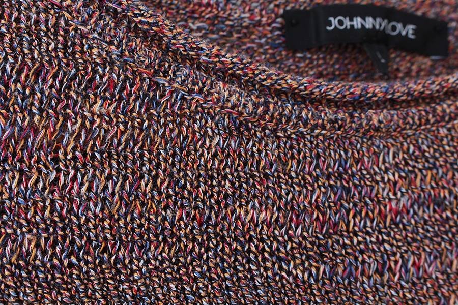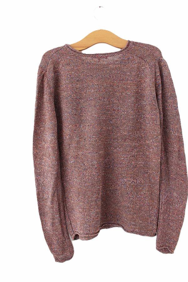 Sweter vintage o melanżowym, pięknym splocie. Klasyczny krój, jednak ze względu na długość rękawów jest to raczej sweter męski.