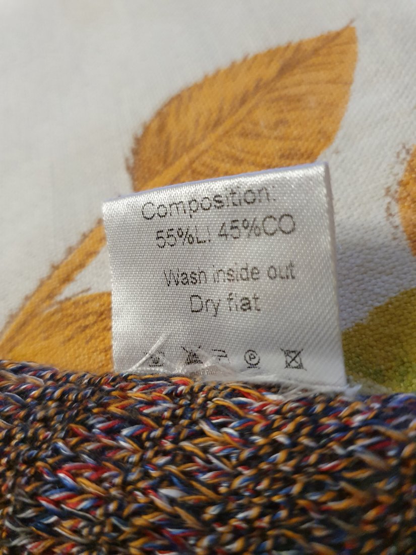 Materiał: 55% len, 45% bawełna (na metce są skróty pokazane na zdjęciu)