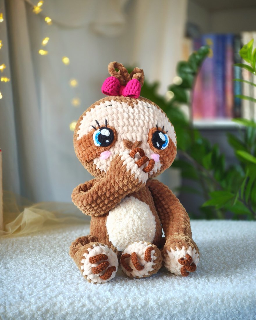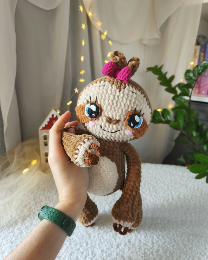 Urocza pluszowa dziewczynka leniwiec wykonana na szydełku to idealny prezent dla dziecka lub dorosłego człowieka na wiele różnych świąt!
