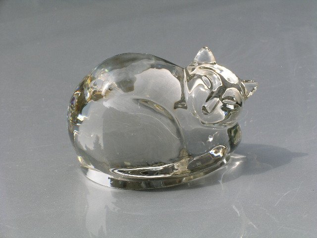 Dekoracyjna figurka z grubego, szlachetnego szkła od Leonardo. I przycisk do papieru, i dekoracja... no i kocia obecność :) Przyjemnie ciężki. Kocha światło :) 9 x 6,5 x 6 cm. Stan zachowania bardzo dobry. Świetny na ekskluzywny prezent.