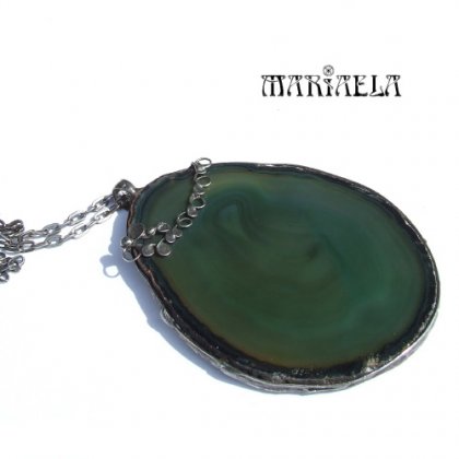 Serdecznie zapraszam do spojrzenia na wyjątkowy wisior wykonany z agatu. Długość wisiorka razem z oczkiem około 11,6 cm, szerokość 8,3 cm. Trwałe wykończenie witrażowe. Używam wyłącznie ekologicznej, bezołowiowej cyny. Prawdziwy rarytas :-) Pojedynczy projekt! Zapraszam! MARIAELA