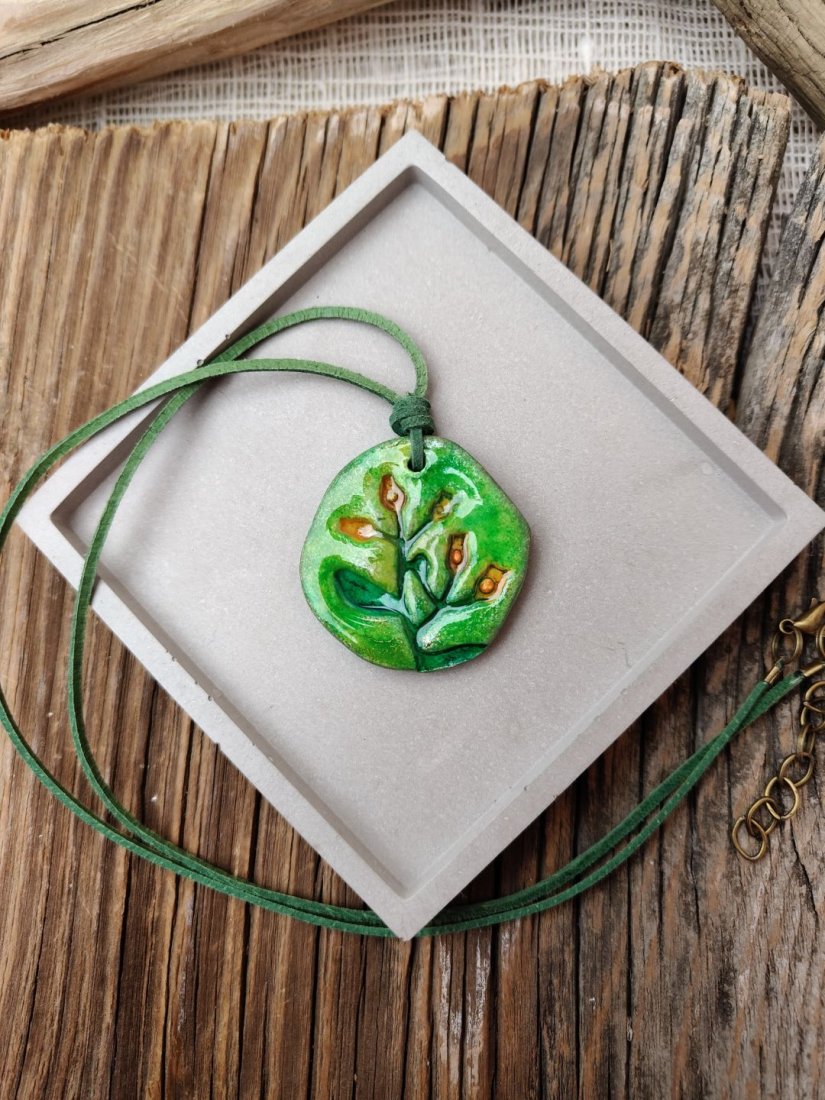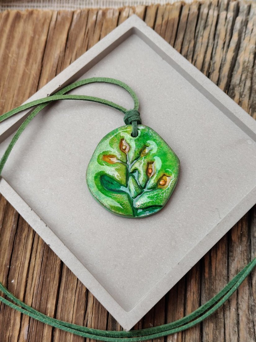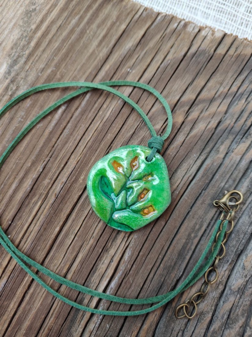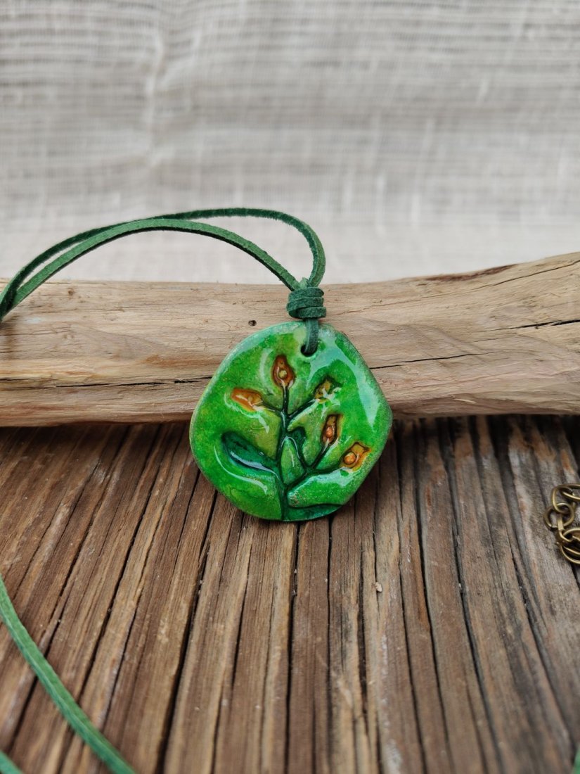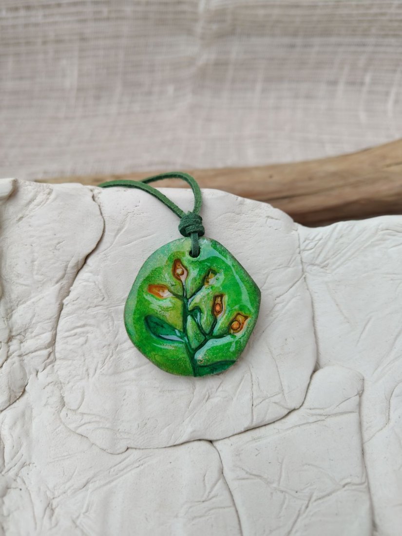 Tagi: #biżuteria artystyczna, #biżuteria z motywem roślinnym, #wisiorek handmade, #zawieszka z gliny