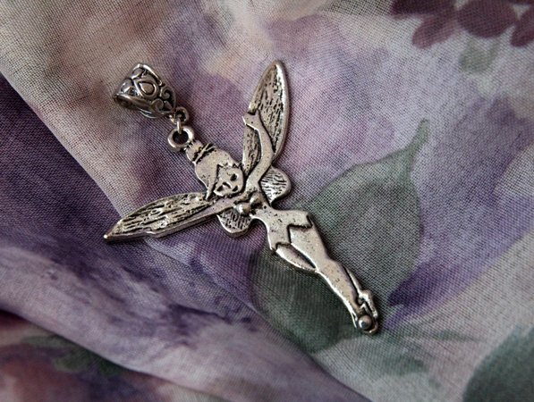 Uroczy wisiorek z leśną wróżką w kolorze srebrnym/ciemnego srebra. Długość wisiorka: 5 cm