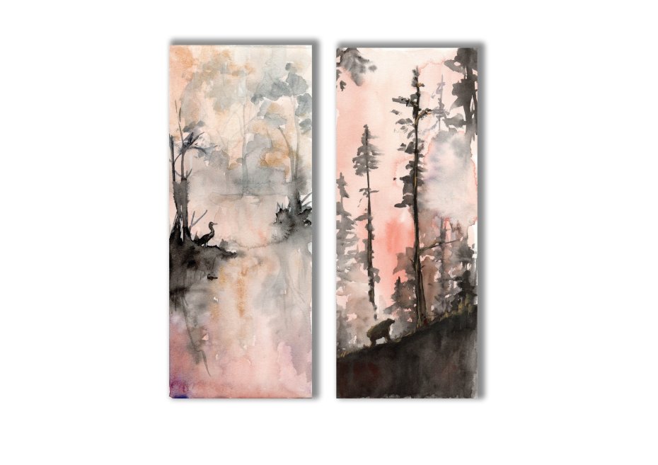 Akwarela ręcznie malowana, wykonana farbami akwarelowymi znanych producentów; na białym, wysokogatunkowym 300g papierze (9,5x 23,5cm). - 2szt