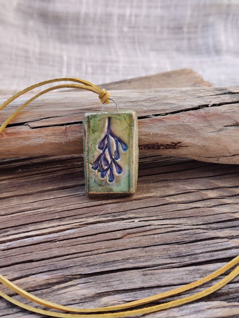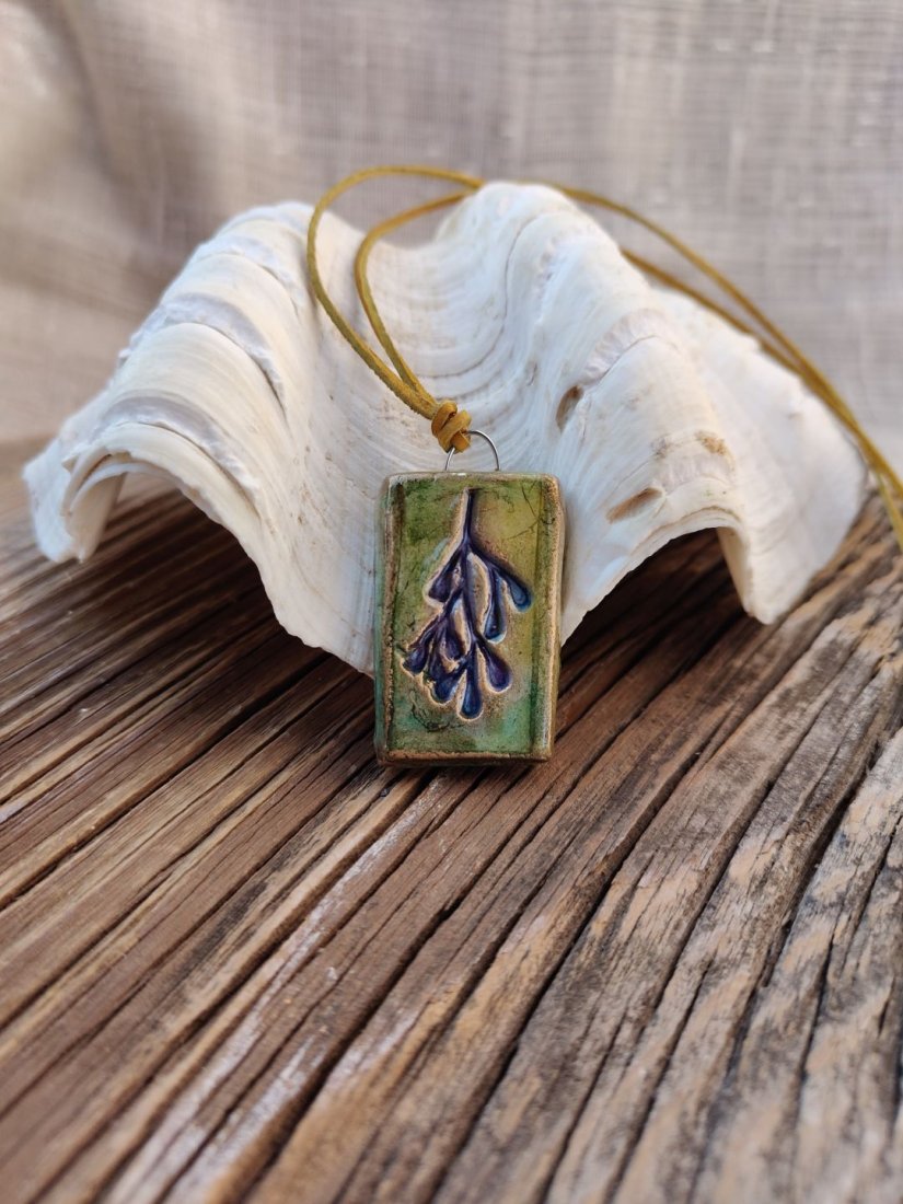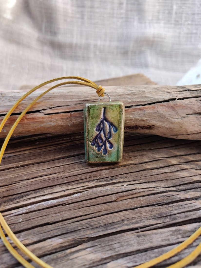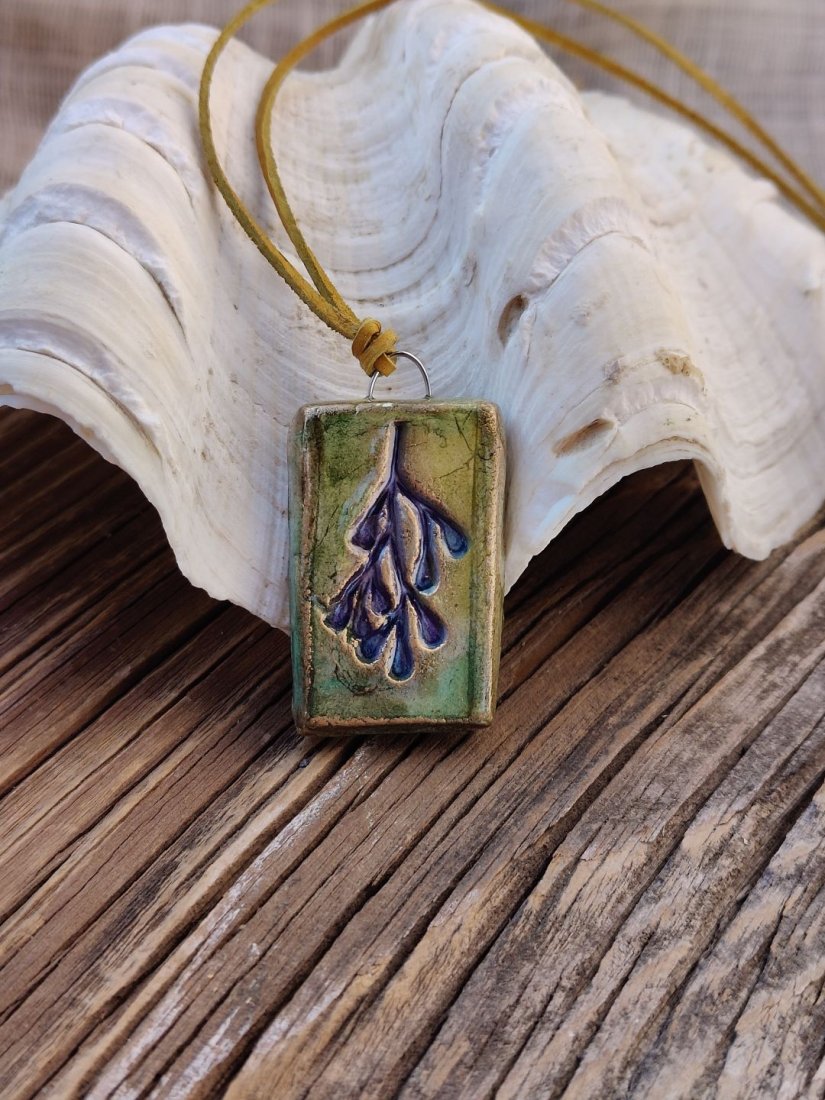 Tagi: #biżuteria artystyczna, #biżuteria z motywem roślinnym, #wisiorek handmade, #zawieszka z gliny