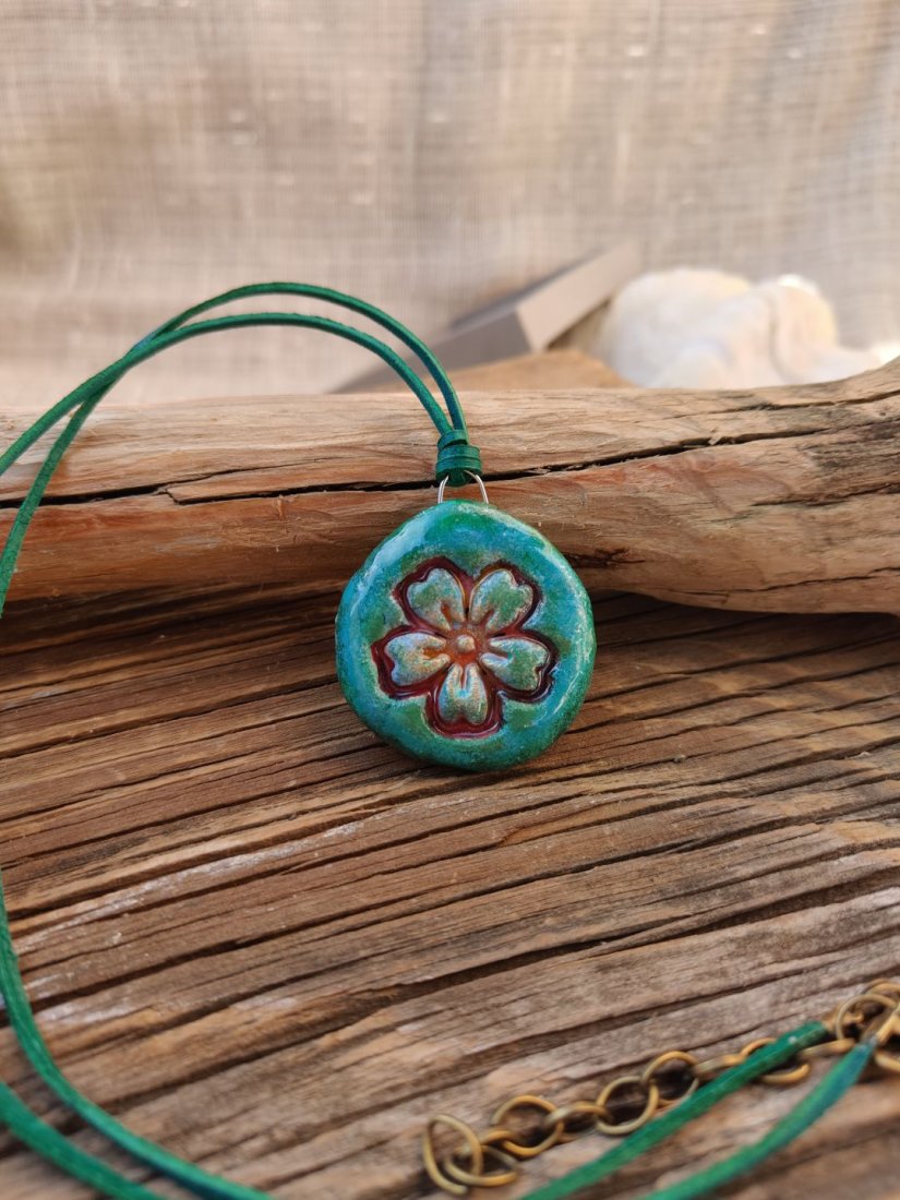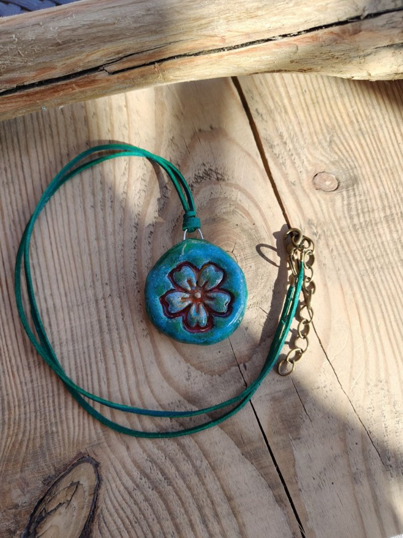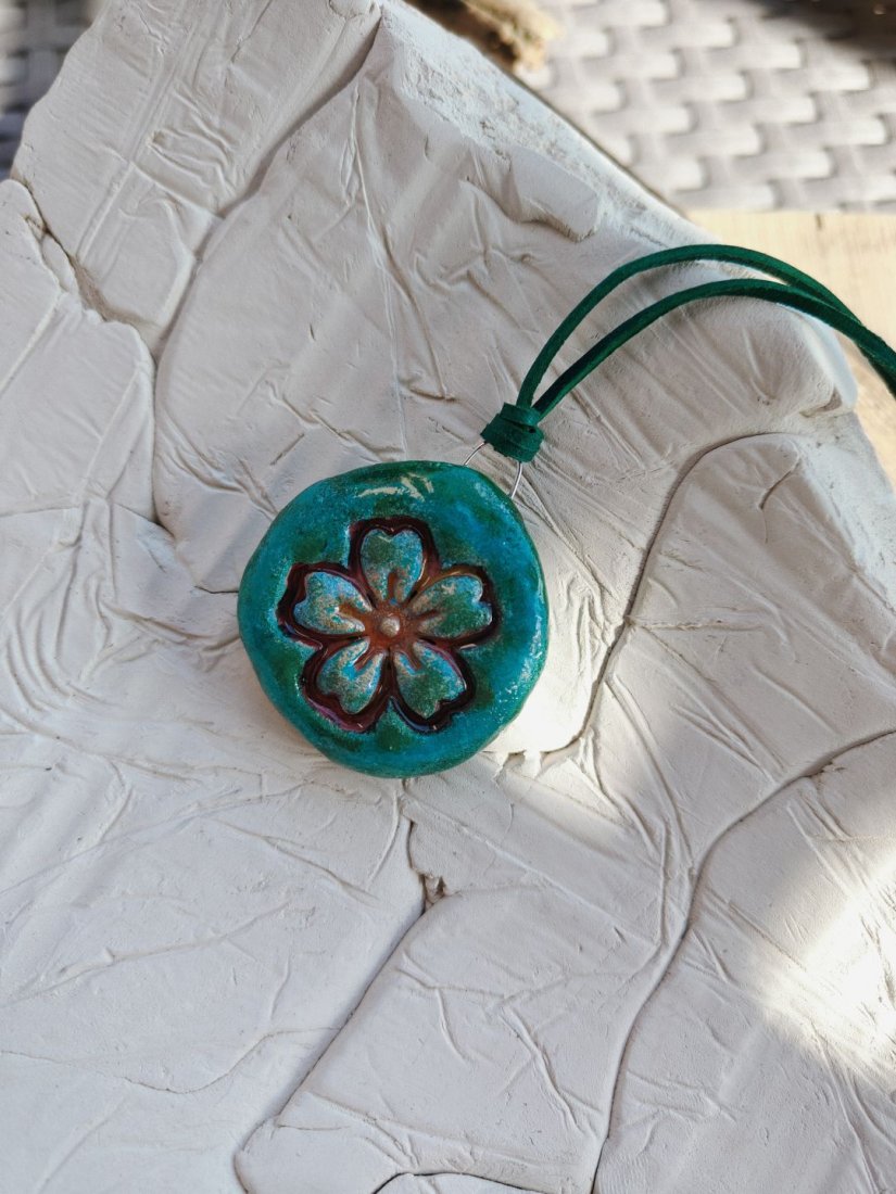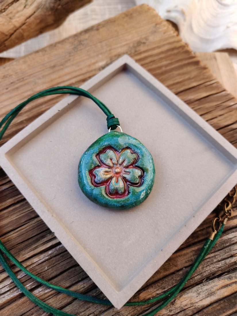 Tagi: #biżuteria artystyczna, #biżuteria z motywem roślinnym, #wisiorek handmade, #zawieszka z gliny
