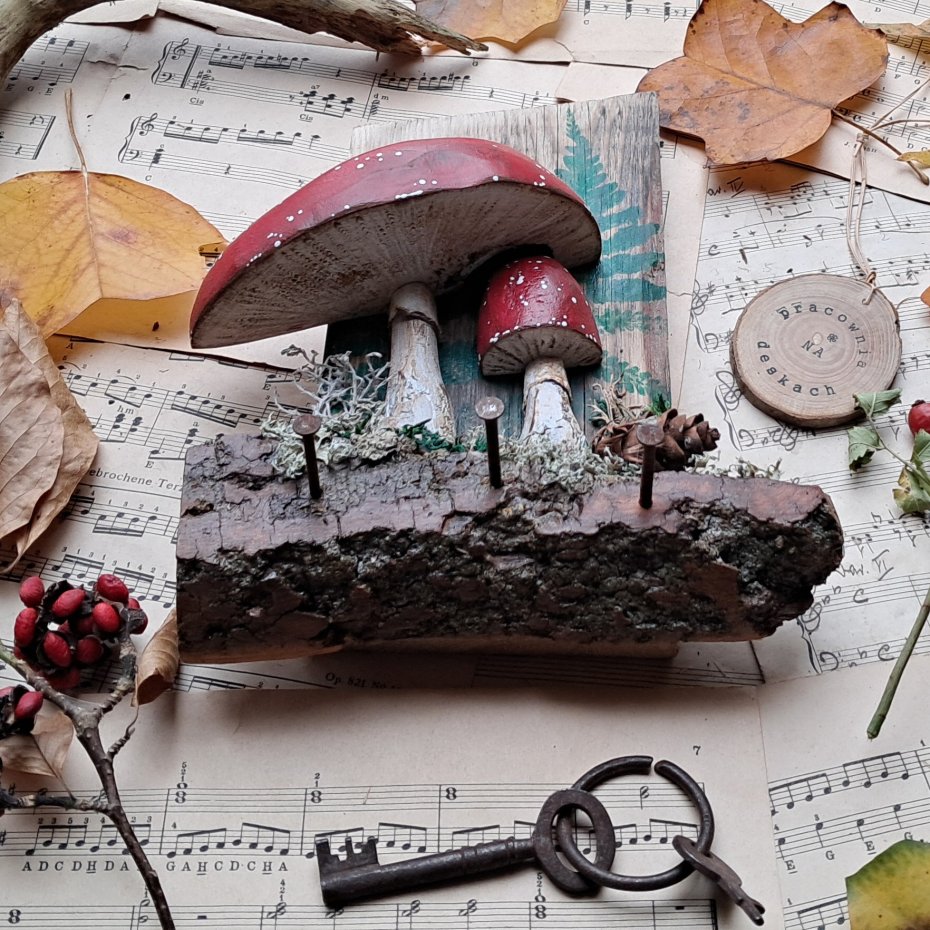 Tagi: #do powieszenia na ścianie, #grzyb muchomor muchomory, #lesny wieszak do kuchni, #ozdobny wieszak na klucze