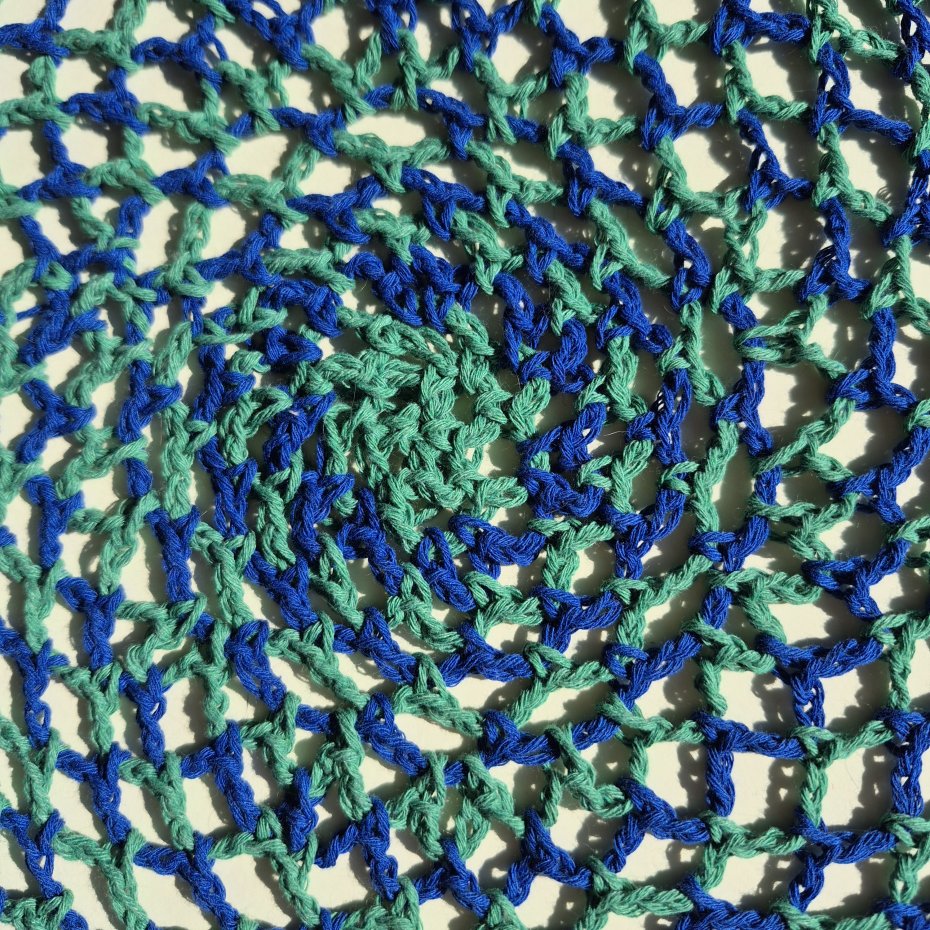 Letni beret bawełniany zrobiony na szydełku z zielono-miętowej włóczki .Dzięki luźnej strukturze ażurowych oczek bardzo przewiewny.