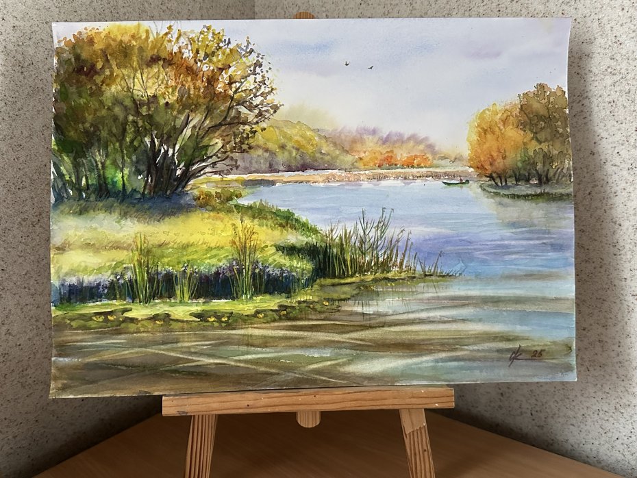 Letni dzień nad rzeką. 30/42cm. Original Akwarela A3 ręcznie malowana.