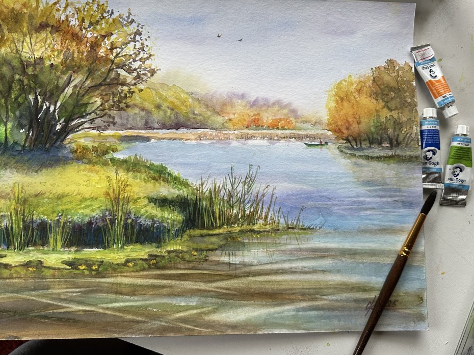 Tagi: #akwarelowy krajobraz, #letni dzień, #rzeką, #wakacje na plaży