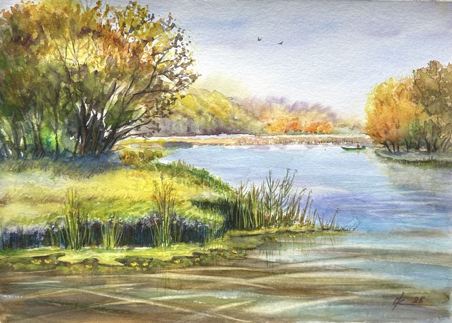 Rozmiar: 30 x 42 cm. Data założenia: 2025. Rysunek wykonany akwarelami na wysokiej jakości papierze. Oryginał, sygnowany.
