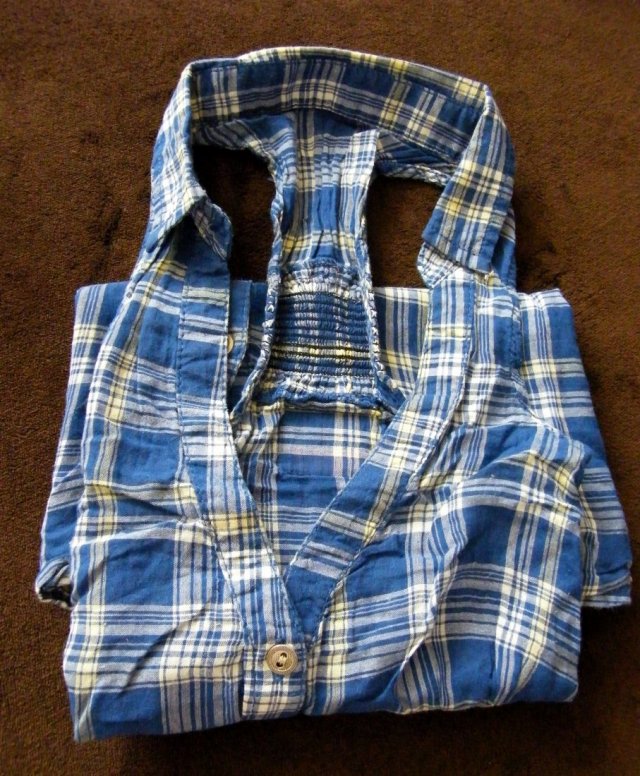 Ciekawa, bawełniana bluzka w stylu country, bez rękawów, z kołnierzykiem.