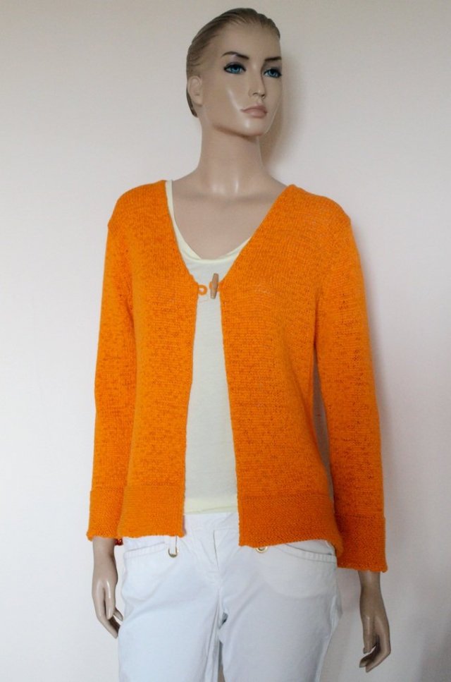 Sweter/narzutka marki Pepper corn, tkany jakby z cieniutkich tasiemek. Materiał 75% bawełna, 25% poliester. Piękny energetyczny kolor (ładniejszy niż na zdjęciach). Rozmiar z metki XL, powinien pasować 40-42. Stan bardzo dobry, prawdopodobnie nieużywany. Podaję wymiary mierzone na płasko;