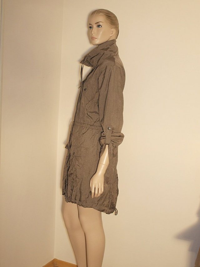 Letnia kurteczka marki M&Co z kreszowanego materiału. materiał 100% nylon. Stan bardzo dobry. Bardzo ładne sportowe detale, pod spodem podszewka. podpinane rękawy. Rozmiar z metki 18, ale mniejsza, myślę, że raczej max. 40. na manekinie o rozmiarze 38.