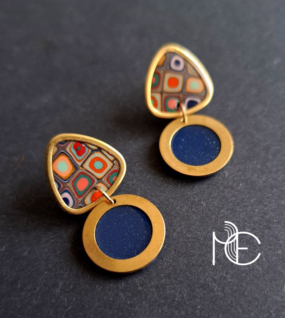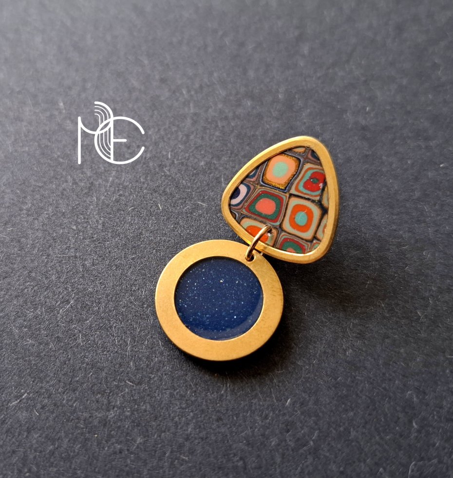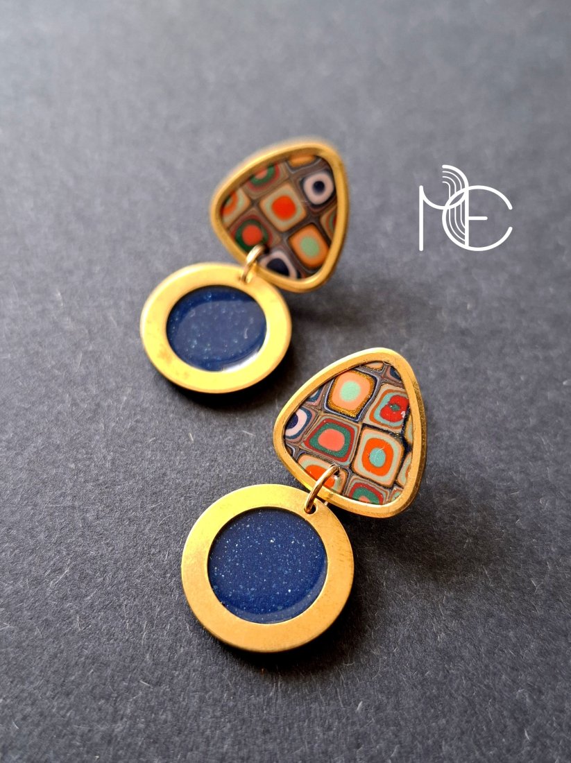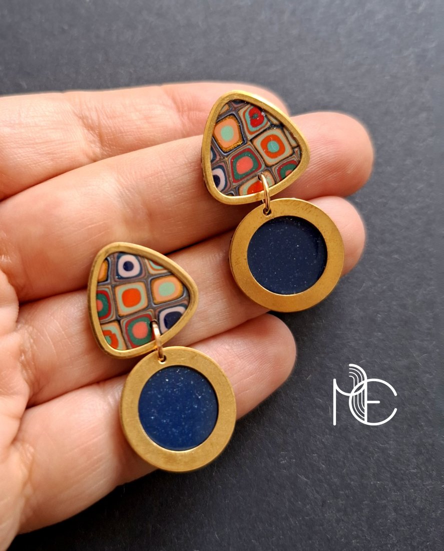 Ozdobne sztyfty wykonane z wysokiej jakości glinki polimerowej w połączeniu z ozdobnymi metalowymi elementami w złotym kolorze. Kolczyki jednostronne ze sztyftami pozłacanymi i nieuczulającymi z zapięciem na klasyczne baranki.