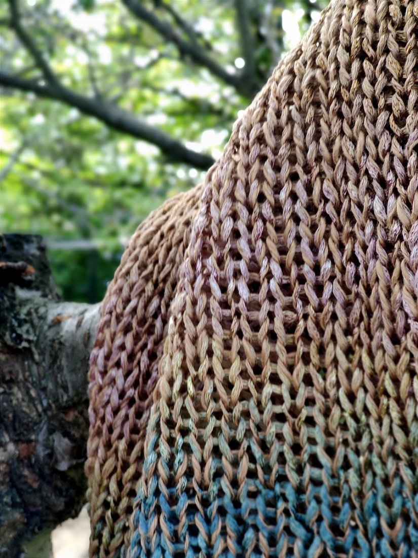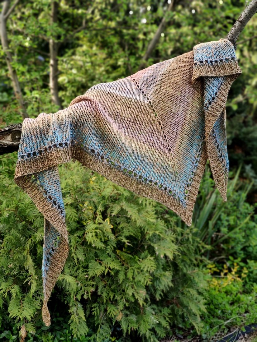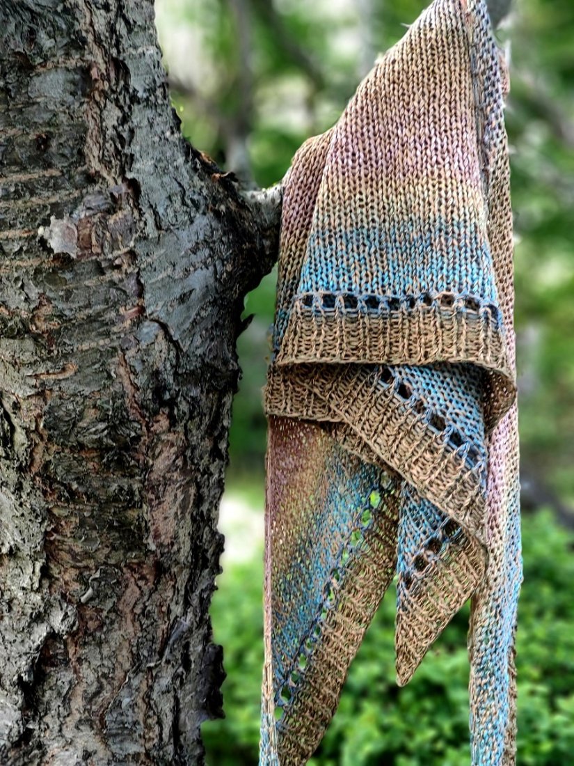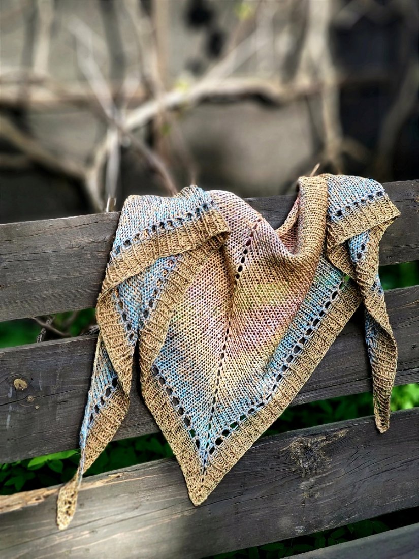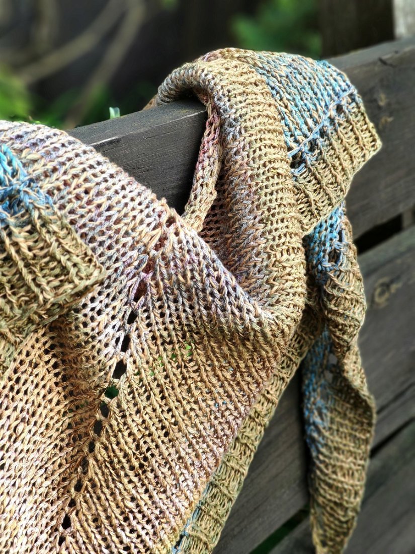 Chusta w klasycznym kształcie, wykonana z wysokiej jakości wielokolorowej mieszanki bawełny (78%) i wiskozy (22%) oraz cieniutkiej przędzy lniano- bawełnianej. Miękka, lejąca, bardzo przyjemna dla skóry.