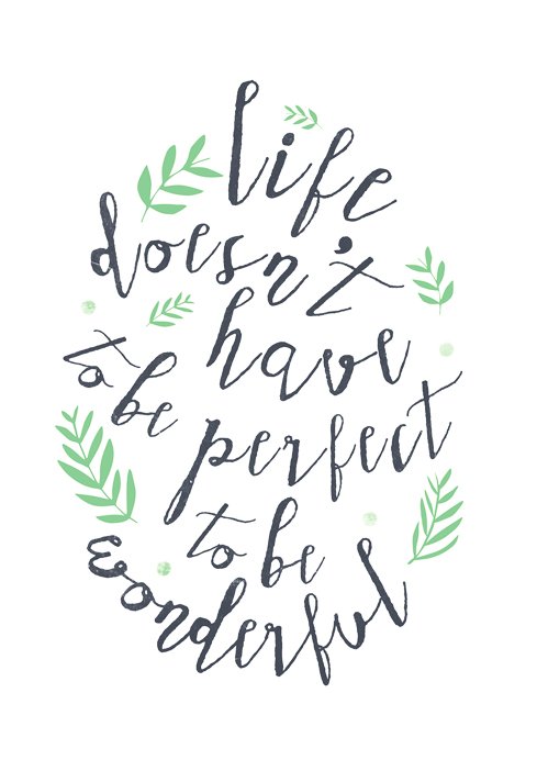 Plakat typograficzny z inspirującym cytatem "Life does not have to be perfect to be wonderful".