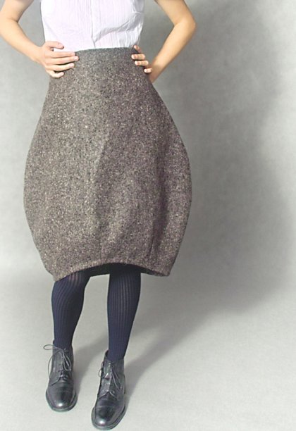 Spódnica uszyta z wełnianej tkaniny (20% poliestru) w melanżu szaro-grafitowym z delikatnym włosem, na podszewce.