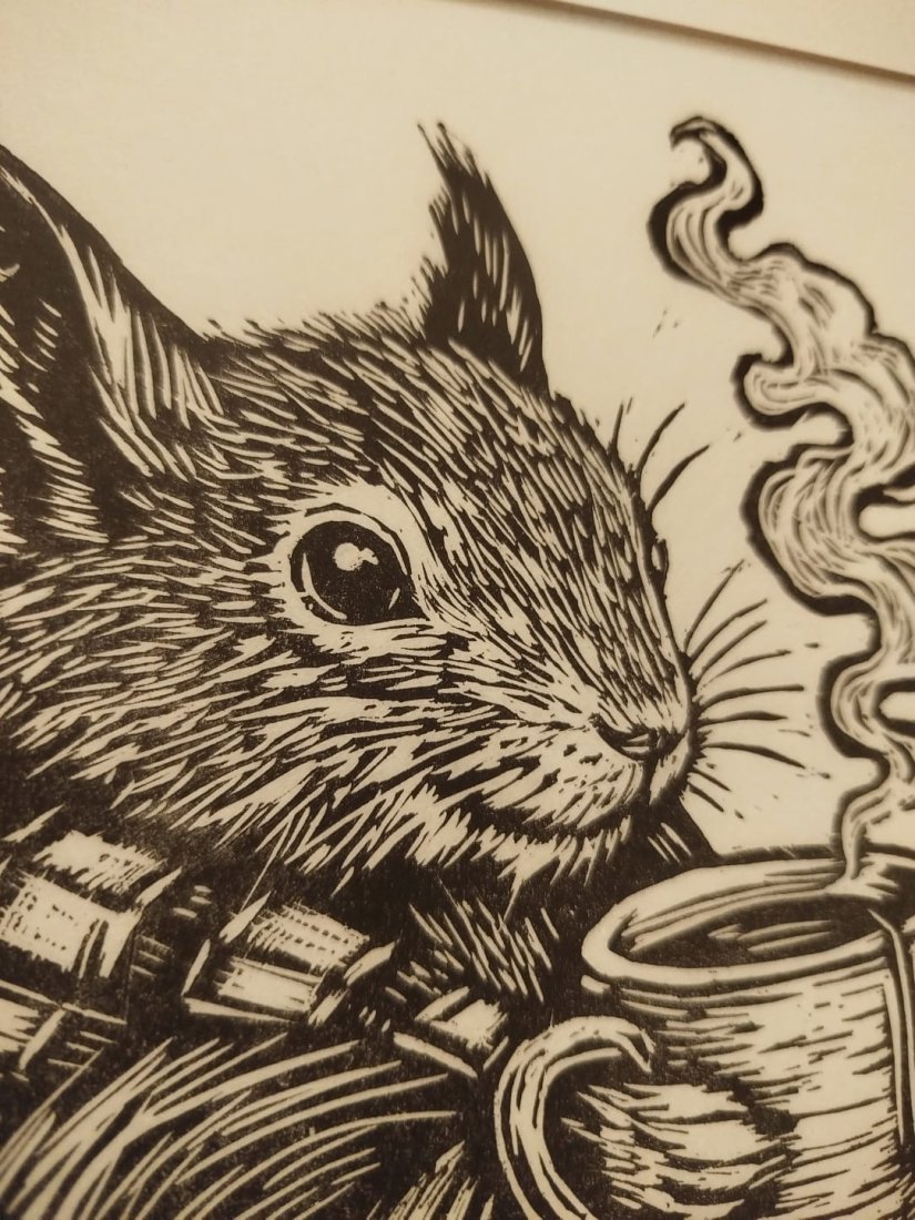 4.  > Linoryt, ilustracja, grafika, obrazek, obraz, sztuka - Wiewiórka "Jesieniara" (nr 7122993)