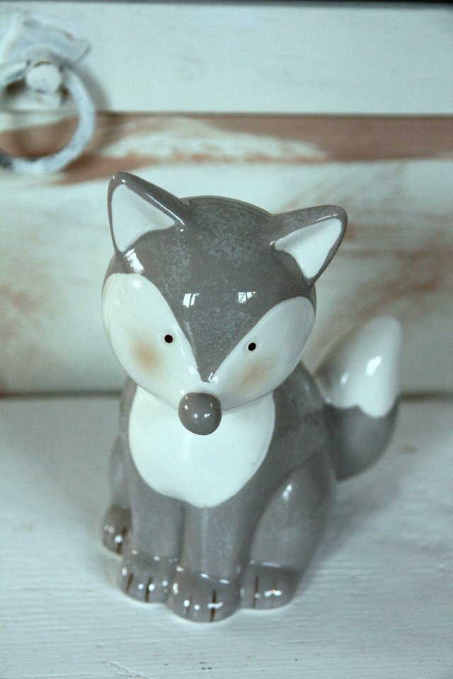 Uroczy, szary ceramiczny lisek w pozycji siedzącej:) Może być niezobowiązującym upominkiem!