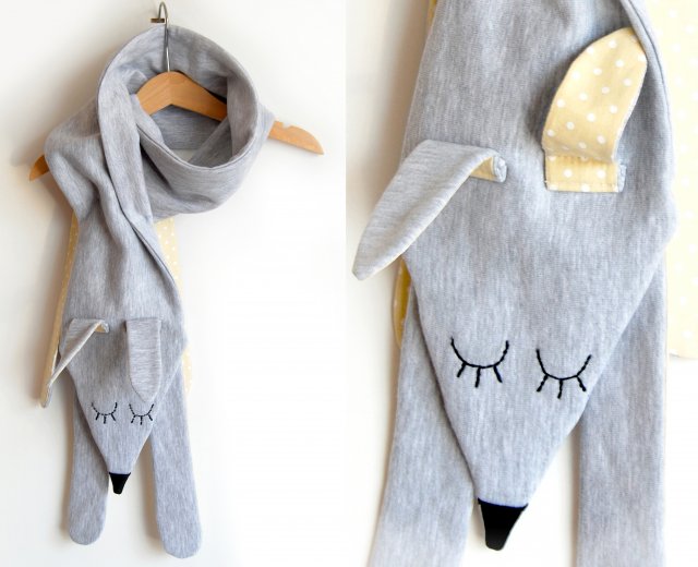 Szary lisek to niezwykle urokliwy szalik dla każdego kto kocha nietuzinkowy design w przedmiotach codziennego użytku. Lisek ma 110 cm długości (licząc bez łapek i ogonka. Uszyty z dwóch rodzajów ciepłej, miękkiej bawełny. Kolor dodatków (lewa strona uszek, łapek) może być dowolny, dostosowany do Państwa potrzeb