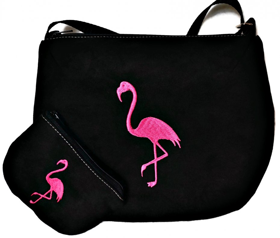 Torebka i portmonetka wykonane z eko zamszu, zapinane na suwak, długość paska w torebce regulowana, bawełniana podszewka,