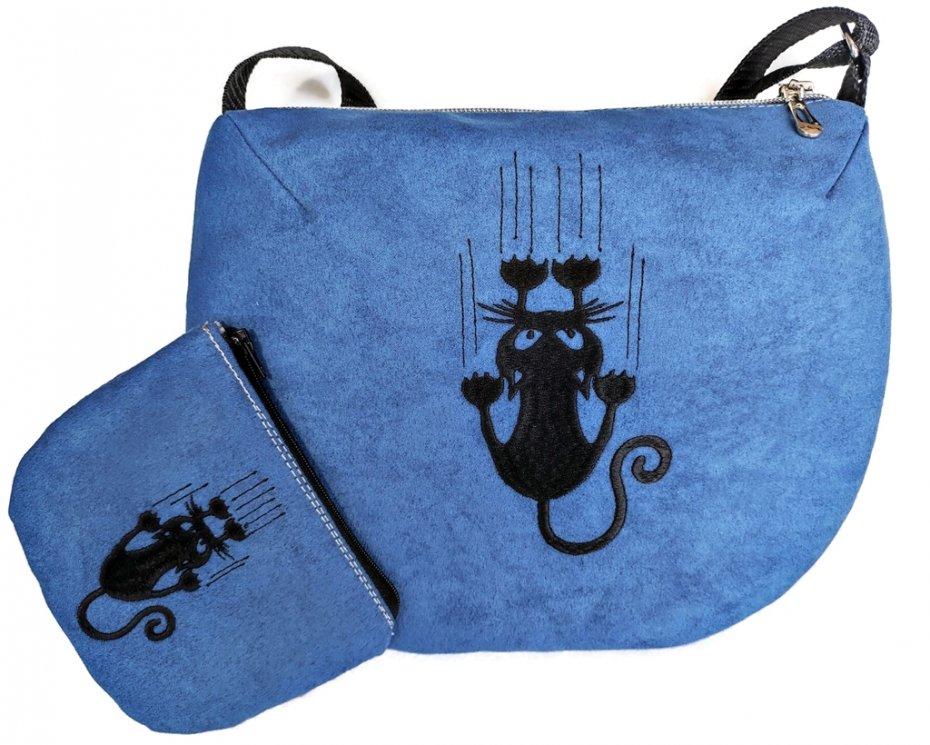 Torebka i portmonetka wykonane z eko zamszu, zapinane na suwak, długość paska w torebce regulowana, bawełniana podszewka,